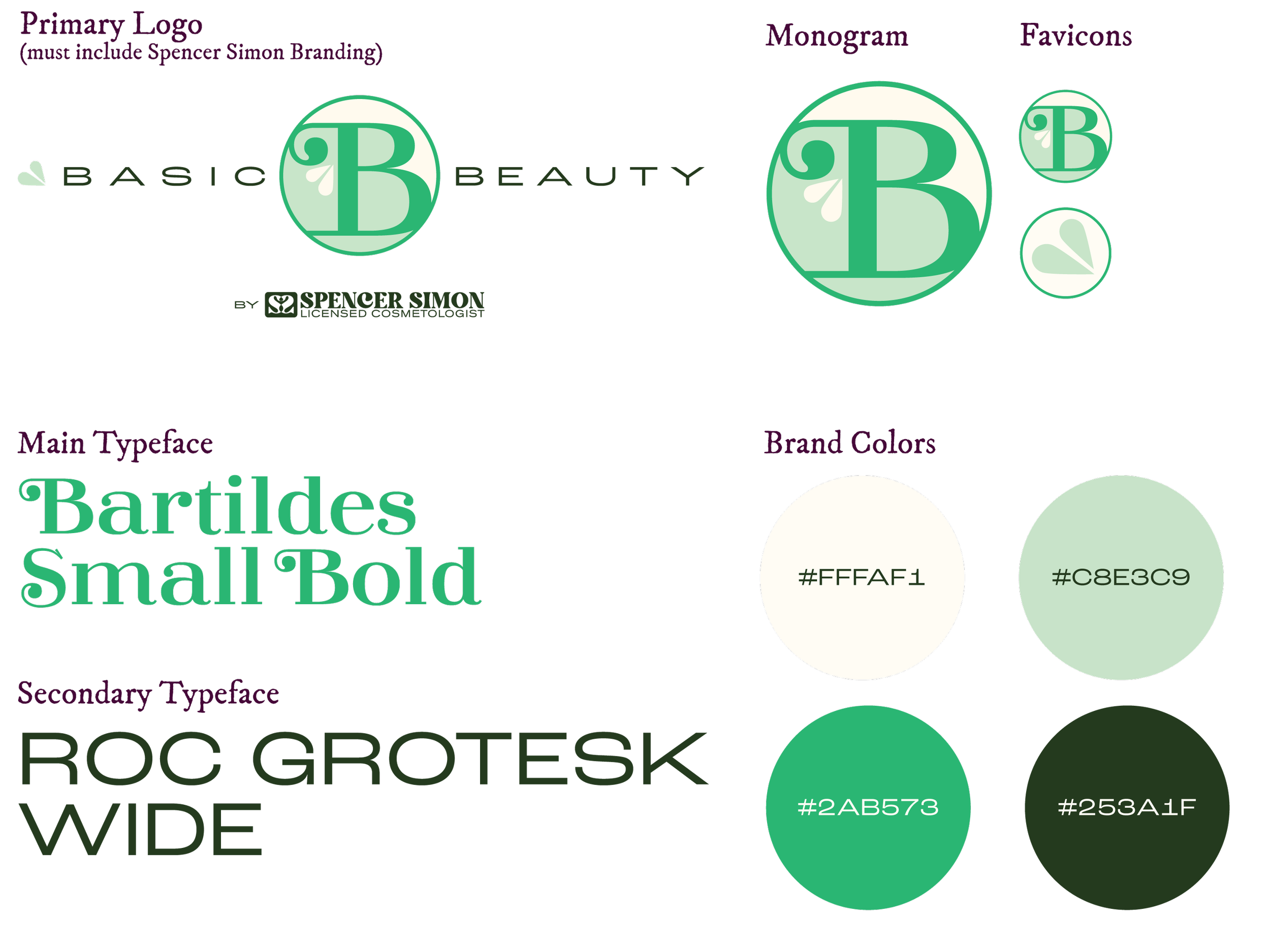 Spencer Simon contacted me to create the branding for both himself for in-salon work and his company, Basic B Beauty.